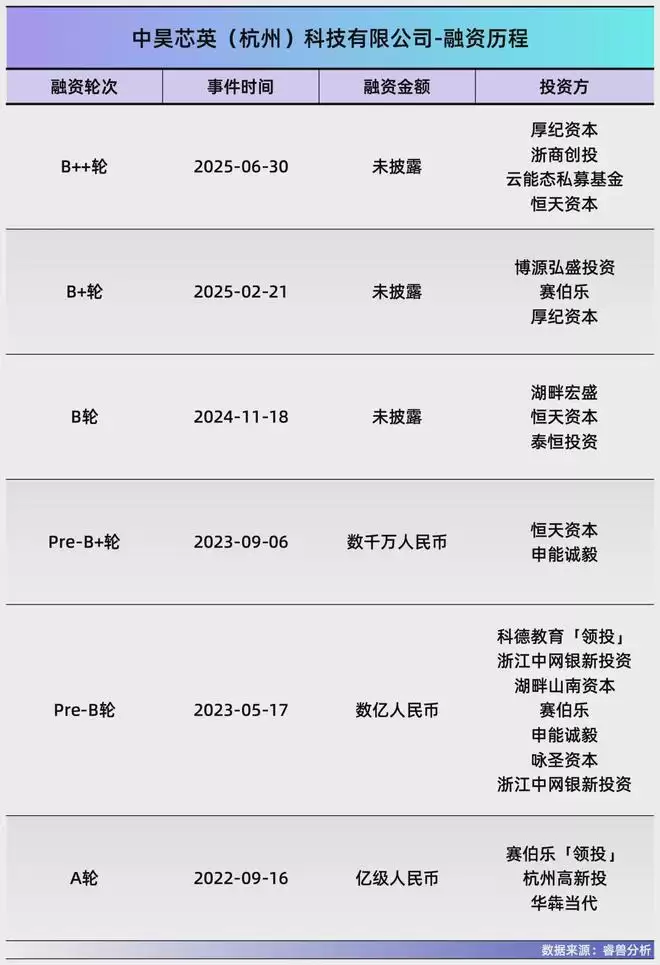 成立以来,中昊芯英完成数轮融资,投资方包括赛伯乐、恒天资本、厚纪资本浙商创投等。