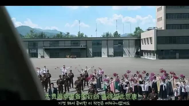 韩国人煞费苦心伪装成平壤:士兵换上朝鲜军装,航站楼挂起朝鲜国旗。可惜戏太粗糙,山田识破后瞬间暴怒。