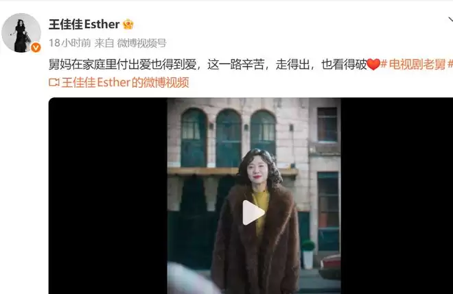 舅妈下线后,王佳佳也发文告别,“舅妈在家庭里付出爱也得到爱,这一路辛苦,走得出,也看得破”还发了一个视频,舅妈这一生的影像都快速过了一遍。