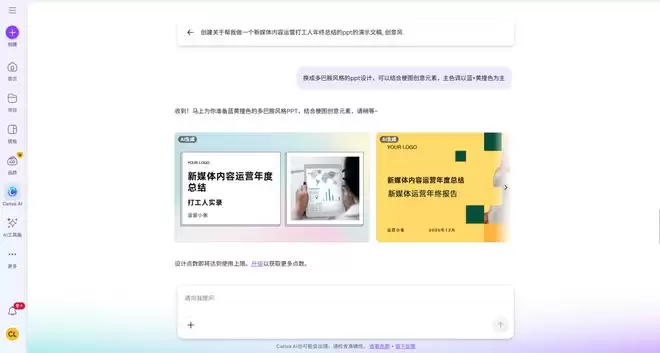 我在Canva可画的AI助手对话框里直接用大白话写道: