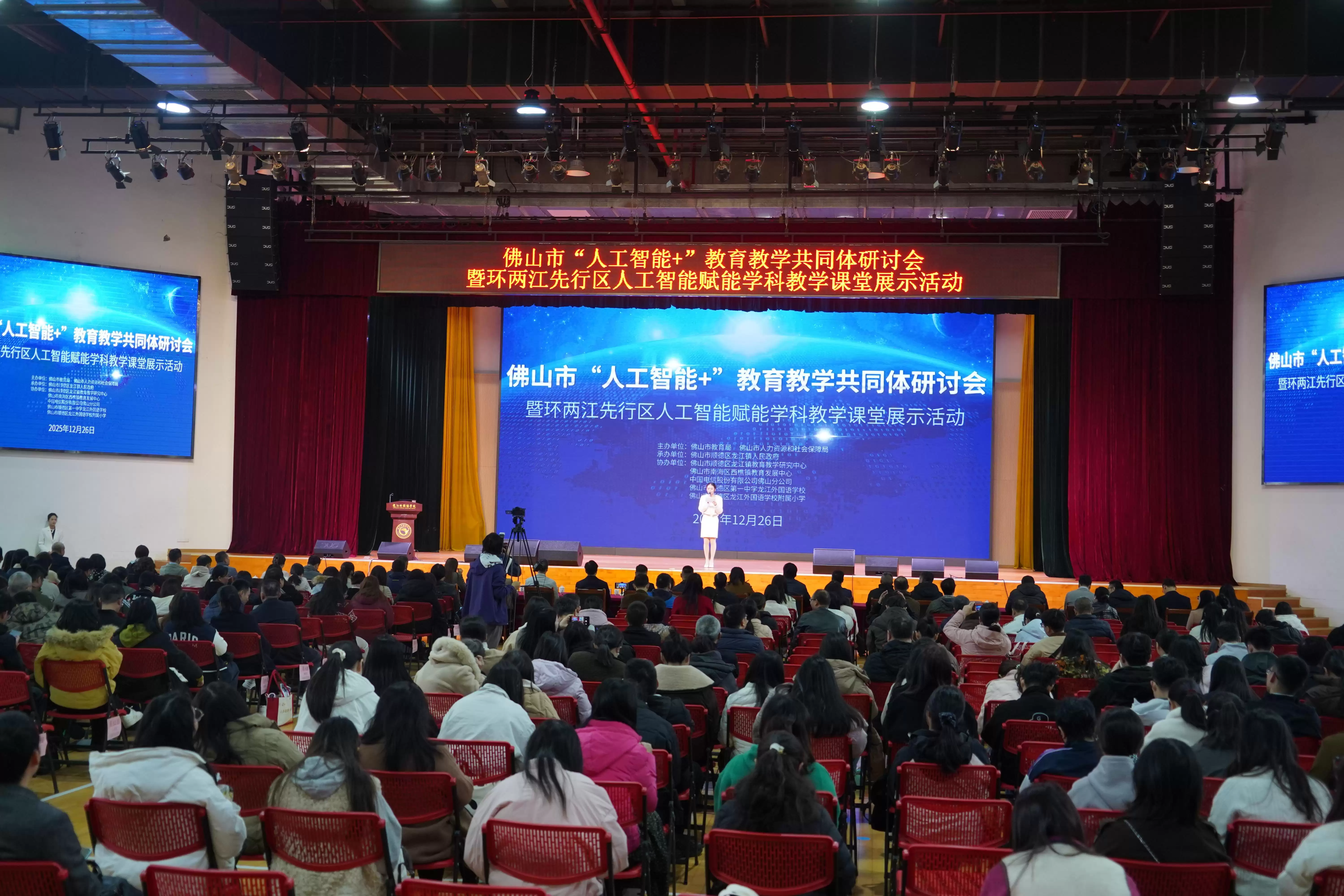为进一步贯彻落实“百千万工程”教育行动,深化“人工智能+”教育教学共同体建设,总结推广智能技术赋能课堂改革的实践经验,2025年12月26日,佛山市教育局、市人社局在顺德区第一中学龙江外国语学校举办“佛山市‘人工智能+’教育教学共同体研讨会暨环两江先行区人工智能赋能学科教学课堂展示活动”。