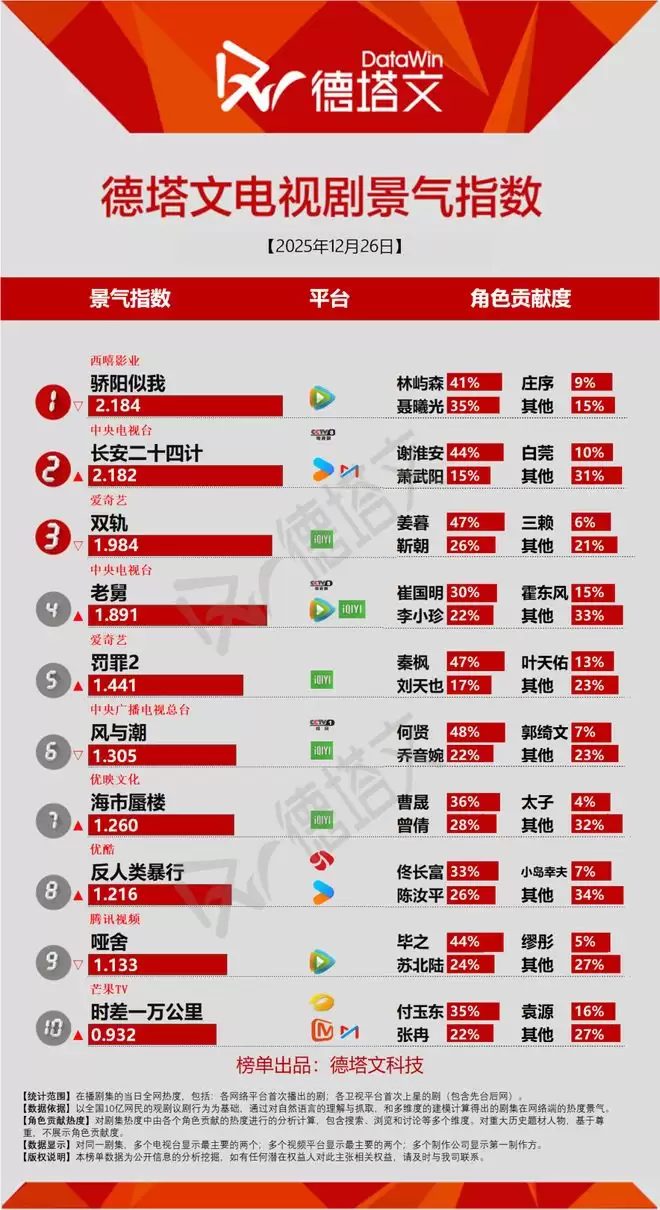 德塔文数据显示,《剥茧》播出期间平均景气指数达1 856,最高单日指数突破2 122。作为优酷“白夜剧场”的重磅作品,通过“话题演员+硬核题材”的差异化配置,在竞争激烈的跨年档中成功突围。德塔文从景