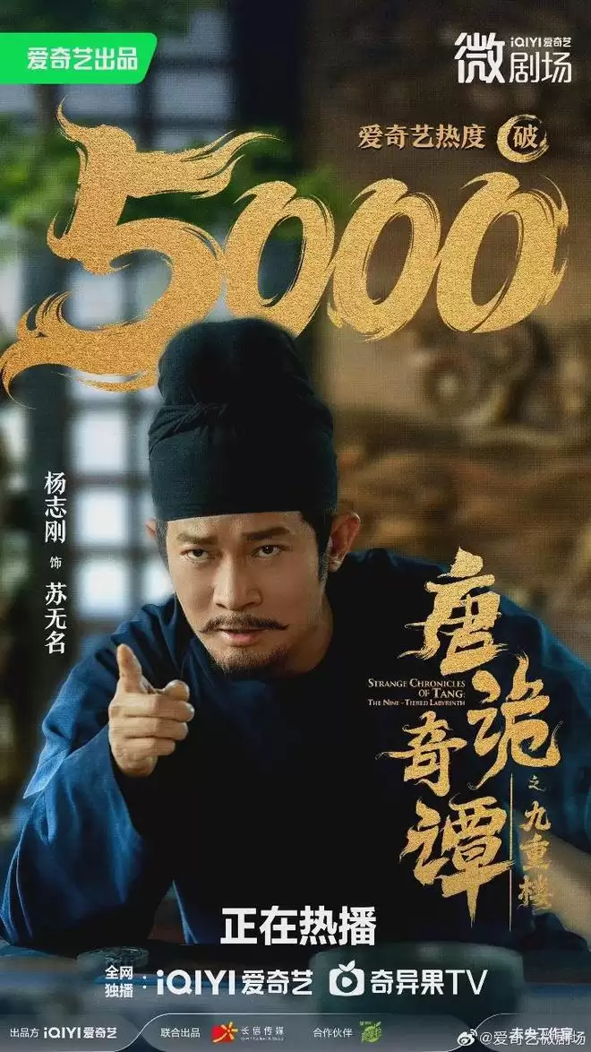 《唐诡奇谭之九重楼》于12月26日上午10点上线,立刻冲到爱奇艺微剧频道飙升榜热度第一,半天时间热度突破5000。