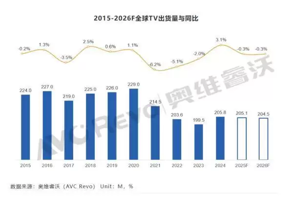 2026年全球电视出货量预计同比下滑