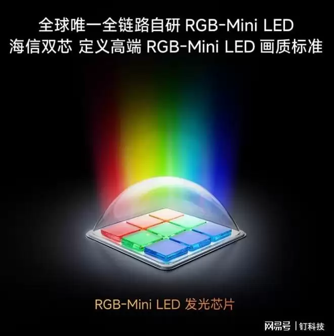 海信的角色不仅是破局者,更是定义者。推动这项技术走向成熟,需要攻克RGB芯片在效率、寿命与成本上的产业化难题,也必须构建与之匹配的运算核心。于是,全球首款RGB光色同控AI画质芯片H7与自研的RGB-Mini LED发光芯片,共同构成了这项技术的双核心驱动。这种从底层芯片开始的垂直整合,构筑了坚实的技术壁垒。