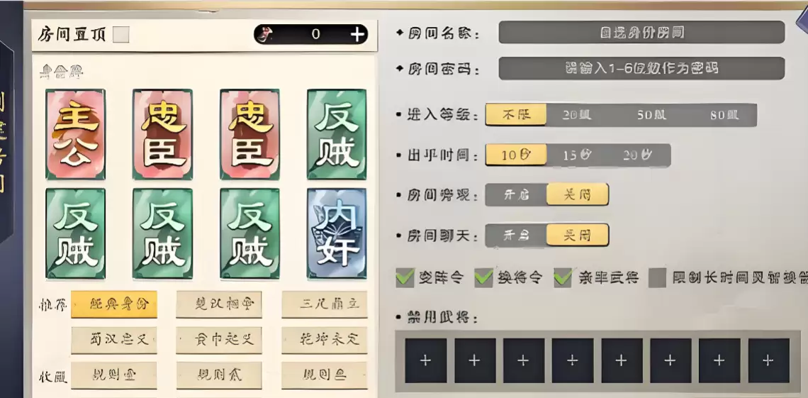 身份模式支持8人对局,所有玩家的身份均为随机分配。目前该模式包含主公、忠臣、奸臣、反贼以及内奸等多种身份,玩家需要与同阵营的伙伴紧密合作,才能最终取得胜利。