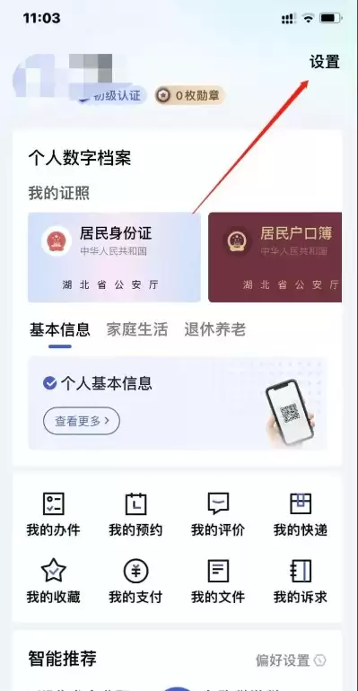 想要在鄂汇办APP上完成中级认证?其实步骤很简单。首先,请在手机上打开鄂汇办APP,登录您的个人账号。接着,找到并点击页面上的【设置】选项。