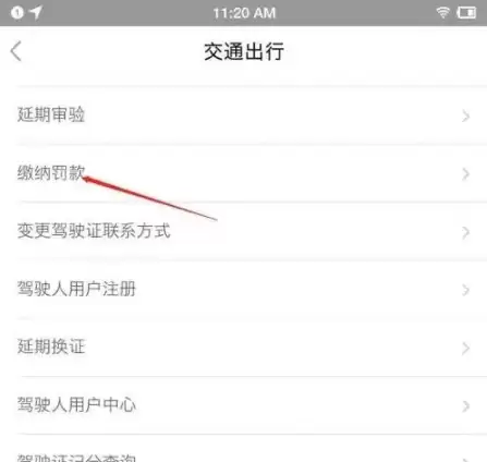 3、在交通出行服务列表中,点击“缴纳罚款”功能,即可根据提示完成后续缴费流程。