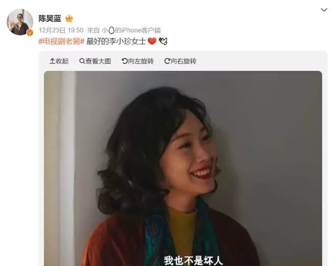 扮演周小丹的陈昊蓝也发文了,“最好的李小珍女士。”这个周小丹,在多年后还要倒追崔国明呢!二胖还以为她看上的是自己,没想到她要做自己小舅妈。周小丹在国外长大的,对待感情大胆直接,约上崔国明就立马表白要当他女朋友。崔国明有没有答应,今晚就能揭晓啦!