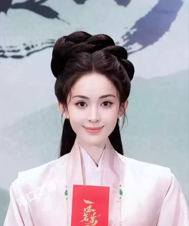她的造型融合清冷与艳丽两种特质,轻盈空气刘海赋予她青春灵动的气息,中分高髻又彰显出贵族女子的庄重气度。