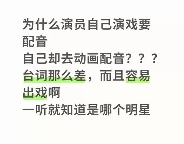 从这方面来看,人们对“明星配音”的反感,都意在质疑明星特权:凭什么好事都被他们占了?这种质疑特权、质疑不公的情绪,无疑已成为一种缝合进时代的社会情绪。