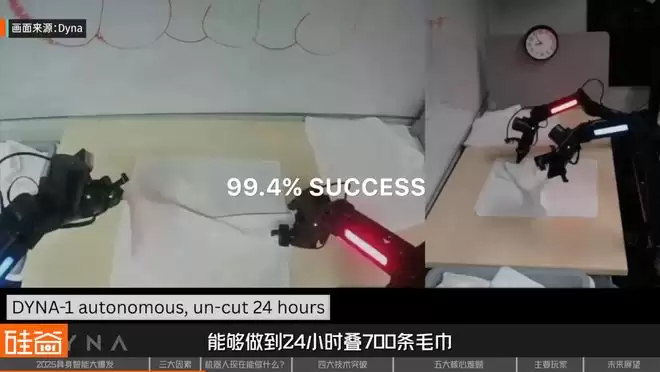 Dyna Robotics是硅谷炙手可热的具身智能公司,一年前刚成立,如今A轮融资达到1.2亿美元,估值6亿美元,投资人包括英伟达。而“叠毛巾”这个任务正是让Dyna最先火出圈的demo。
