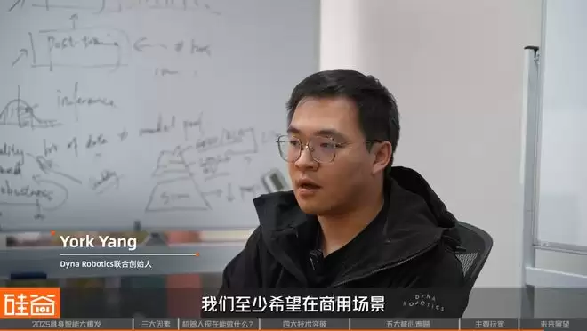 York Yang Dyna Robotics联合创始人 我们自己的目标是在明年我们至少希望在商用场景有比较大规模的部署。家用我们会择机看,这个时间线应该也不遥远,可能也就在1~2年左右。