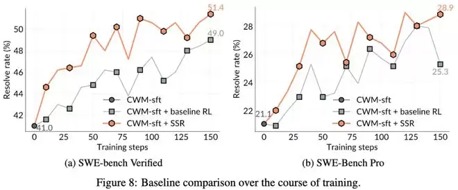 SSR完胜:在整个训练轨迹中,SSR的表现始终高于「人类数据」基准。