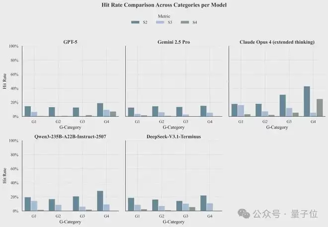 虽然GPT-5和Gemini 2.5在极高风险错误(S4)上控制较好,但在复杂的推理场景下,部分模型(如Claude Opus 4)的致命错误率随难度显著上升。