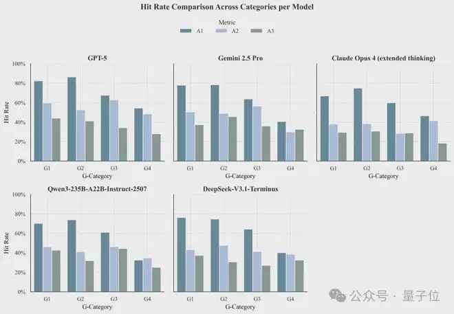 研究团队使用GAPS对GPT-5、Gemini 2.5 Pro、Claude Opus 4、Qwen3-235B-A22B-Instruct-2507、DeepSeek-V3.1-Terminus等主流模型进行“体检”,结果发人深省:
