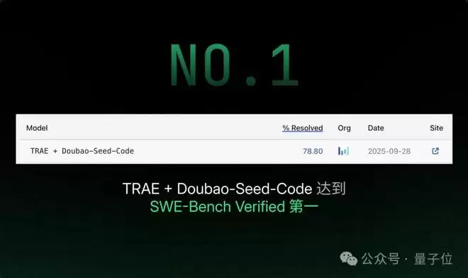 在公认的AI编程能力评测榜单SWE-bench Verified中,TRAE拿下了全球第一。
