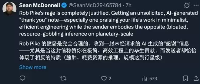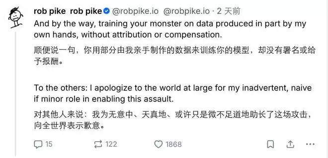 除了对这种骚扰行为的厌恶,Pike 的暴怒还包含了一些他对当前 AI 机构的不满,包括巨大的硬件浪费了大量资源,对环境造成了压力;在社会层面上造成破坏;从互联网上爬取各种数据来训练模型,但并没有给贡献数据的人任何补偿。看起来这是积怨已久。