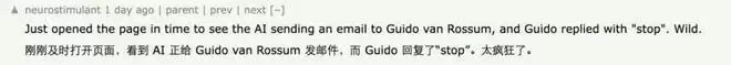对于这种行为,多数人表示能理解收件者的心情。还有人调侃说,迫不及待想看剧情发展到 AI 给已经过世的 AI 先驱 Marvin Minsky 发邮件,然后发现他已经被冷冻保存(之前有报道说 Marvin Minsky 死后接受了冷冻保存,但冷冻机构的最新声明既没确认也没否认消息真实性),于是开始资助冷冻研究……