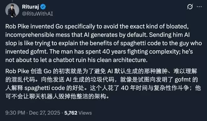 还有人从中读出了另一重原因:Pike 花了几十年时间与复杂性作斗争,他本身就看不惯擅长生成臃肿代码的 AI。