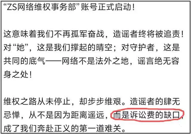 ——“维权之路从未停止,却步步维艰。造谣者的肆无忌惮,从不是因为距离遥远,而是诉讼费的缺口,成了我们奔赴正义的第一道难关。”