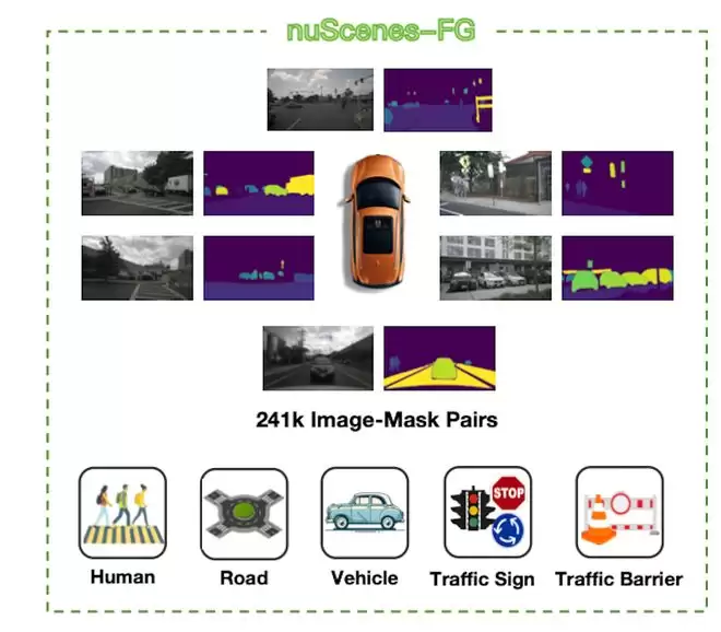 这套包含24.1万对高质量标注图像的数据集,对复杂的交通环境进行了像素级的拆解,将车辆、行人和道路边界等关键前景从杂乱的背景噪声中剥离出来。