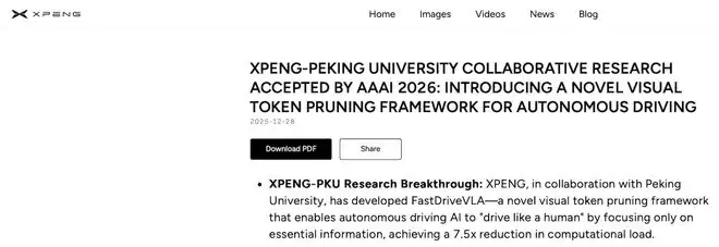 车东西12月29日消息,日前,北京大学与小鹏汽车团队的最新研究成果FastDriveVLA被人工智能顶会AAAI 2026收录。