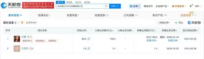 近日有网友查到王女士在德云社的职务发生了变动,发现她不再是执行董事了反倒成了董事。