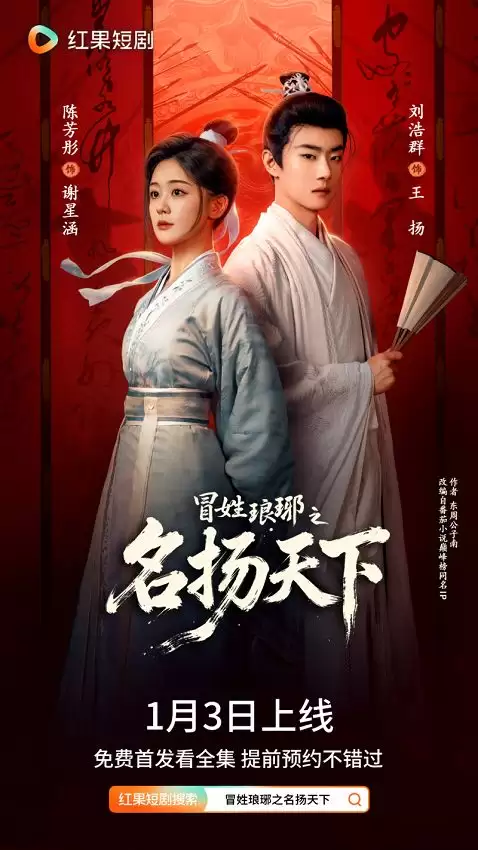 由红果短剧与长信传媒联合出品的人文历史题材短剧《冒姓琅琊之名扬天下》近日正式定档,将于2026年1月3日在红果短剧APP全网独家免费播出。该剧是红果短剧“果燃计划”重点扶持项目,改编自番茄小说巅峰榜IP作品《冒姓琅琊》(作者:东周公子南)。剧集讲述现代文学博士王扬意外穿越至风云诡谲的南北朝时期,凭借满腹经纶,以“学识”为刃,在门阀林立的士族社会中绝地求生、逆势破局的故事。