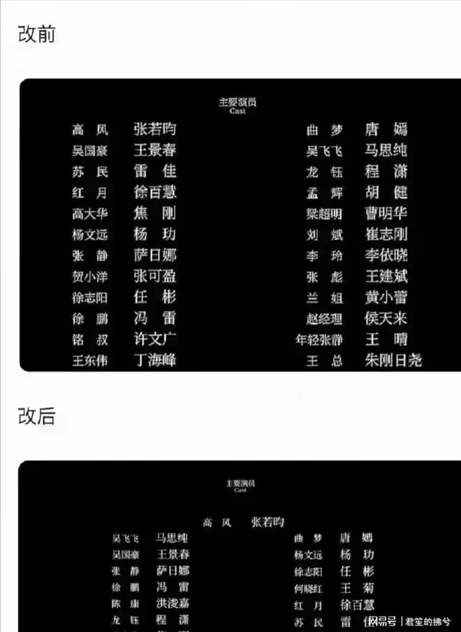 不过之后这个片尾排名又改了,成了马思纯在唐嫣的前边。
