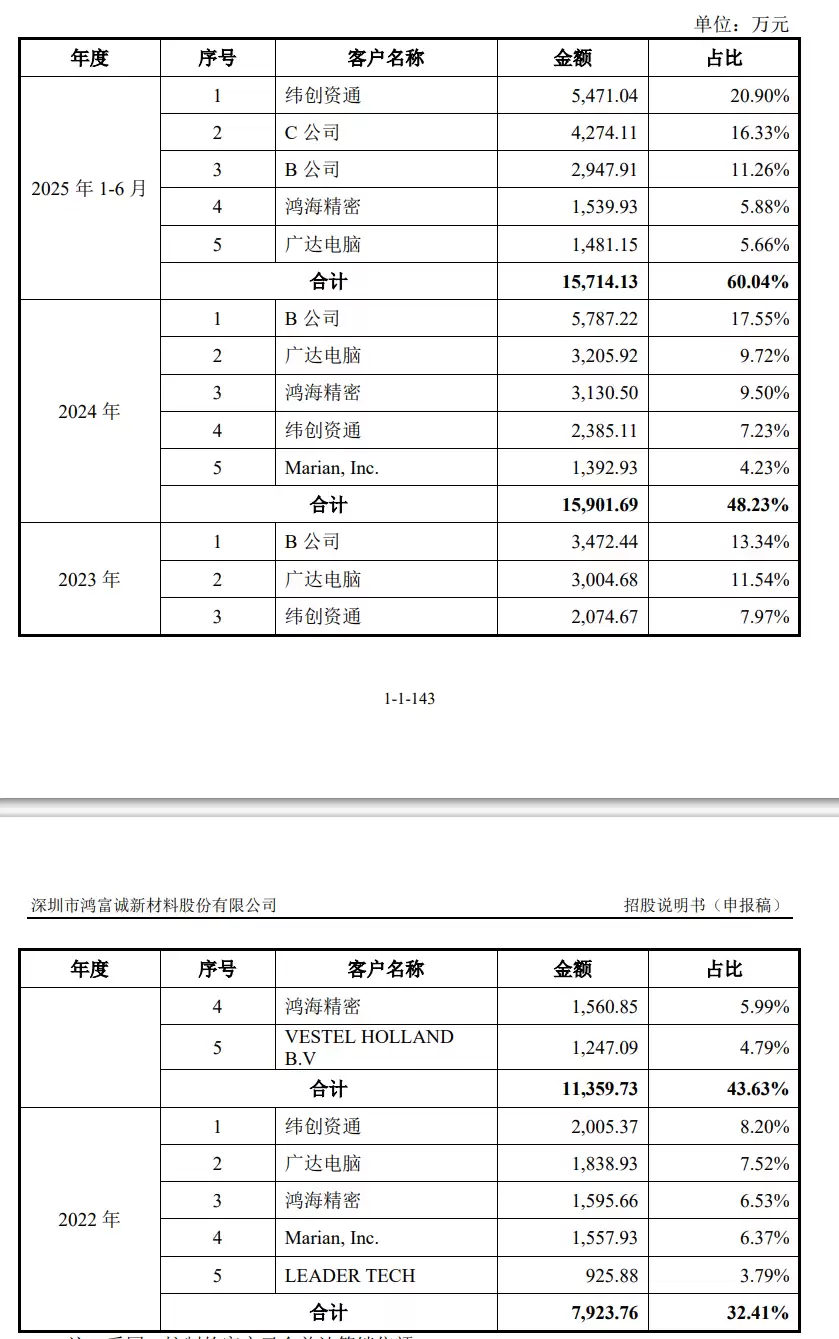 报告期内(2024年至2025年上半年),鸿富诚的营业收入分别为2.45亿元、2.6亿元、3.3亿元、2.62亿元;净利润分别为3829.51万元、3476.17万元、7150.51万元、9074.49万元。