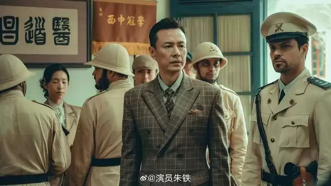 朱铁扮演八面玲珑还是有一颗赤诚爱国心的洛柏,“洛柏,乱世当道,民生涂炭职责所在,身不由己。”