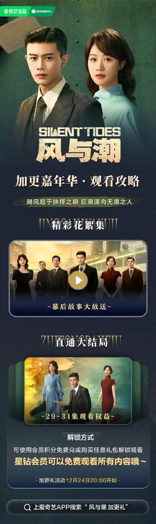 任嘉伦、蓝盈莹、李纯等人主演的《风与潮》圆满收官了,最后4集超前点播,在平安夜迎来大结局能一口气看到31集大结局了。最后几集堪称全程高能,看完震撼又感动,又燃又虐又热血沸腾的,看完后心情久久不能平静,舍不得和这部细糠剧说再见。