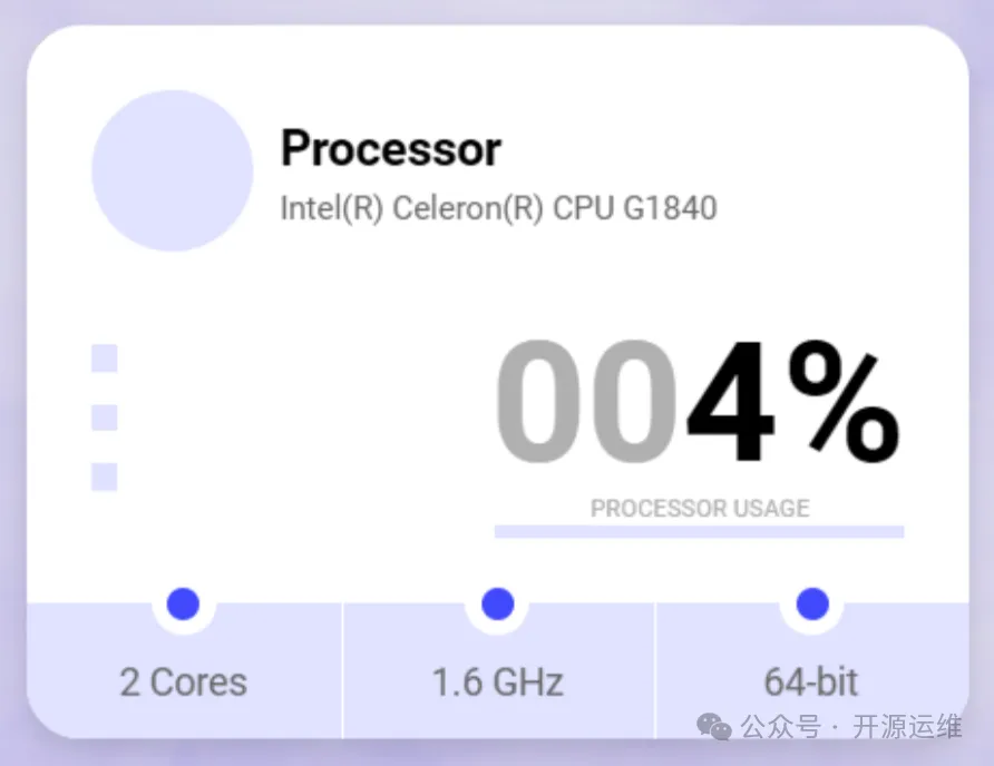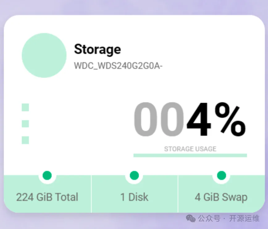 它避免信息过载,只聚焦关键指标:CPU 使用率、内存占用、存储空间和网络速度,让你快速抓住重点,注意力不被分散。