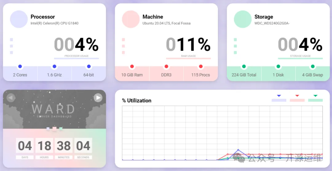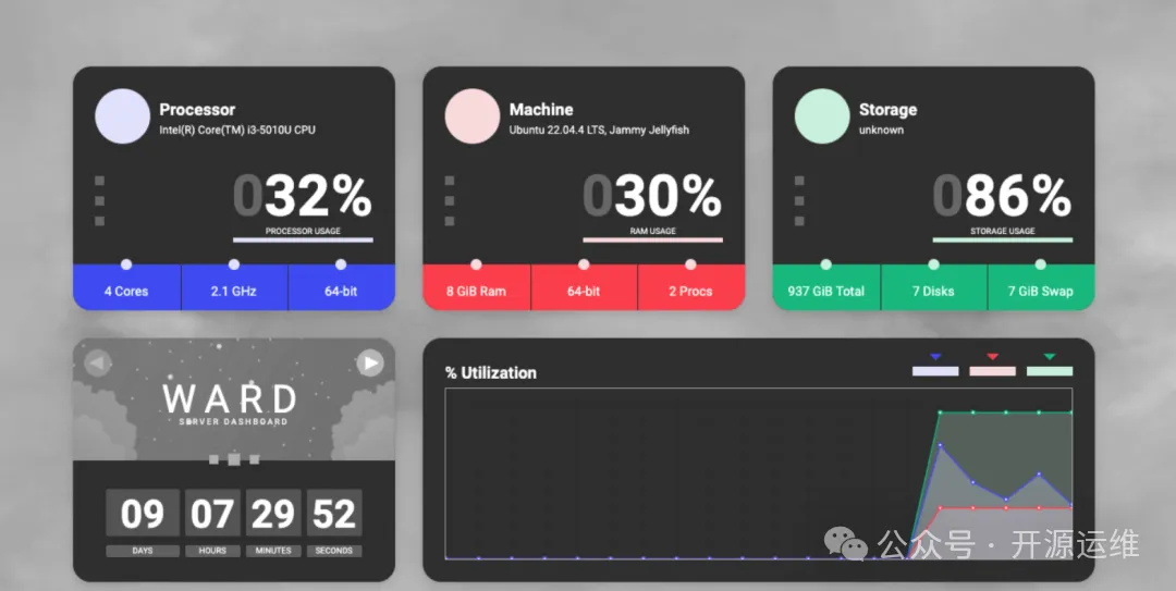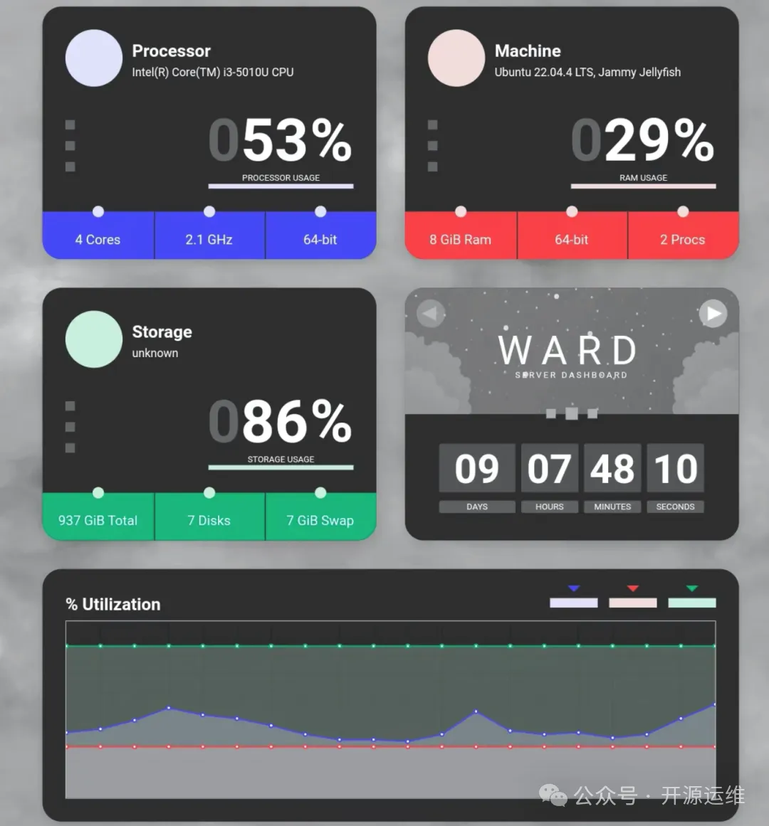 Ward 是一款使用 Java 开发的极简服务器监控仪表板,它基于 OSHI 库,能够跨 Windows 和 Linux 系统运行。它并非旨在替代专业的监控系统,而是提供一个快速、美观的运行概览,就像查看汽车仪表盘一样,让你直观掌握服务器的核心状态。