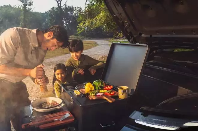 此外,全车共设计 50 处储物空间及 12 个取电口。前备厢容积 176 升,采用全封闭电动开启结构,内部集成 220V 电源,具备防泼溅与可冲洗特性,最新还提供拓展配件,可快速转换为露营料理台或观景平台。