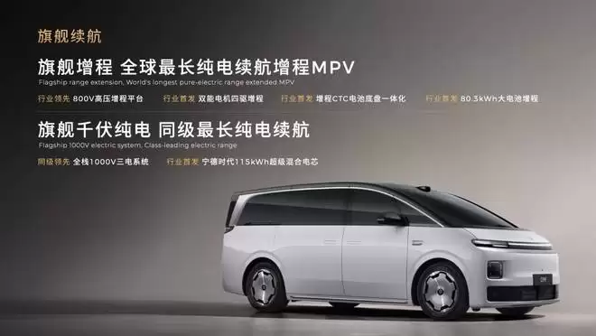 新车纯电版搭载 115 kWh 宁德时代「超混电芯」,该电芯通过分子级融合三元锂与磷酸铁锂材料,兼顾能量密度、安全性和循环寿命,其电芯能量密度较常规产品提升 18.5%,配合全域千伏高压架构,CLTC 续航超过 720 公里。