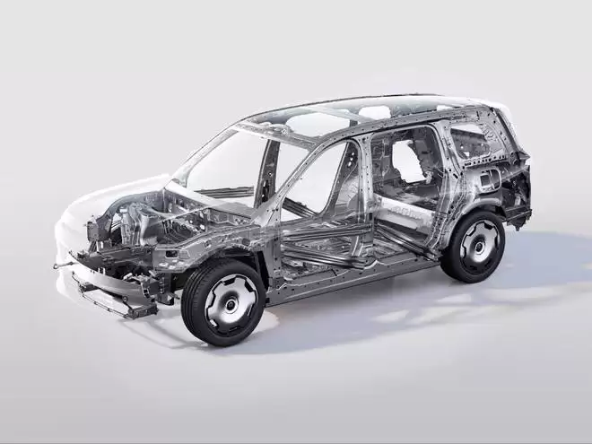 安全方面,D19 采用「九横三纵四连环」笼式车身结构,A 柱区域应用「回形五重钢」加强设计。全车 16 处关键部位使用抗拉强度达 2000 MPa 的热成型钢,高强钢与铝合金在白车身中占比 83%。「目」字型截面铝合金前防撞梁宽度覆盖车头 80% 以上,厚度 5mm。