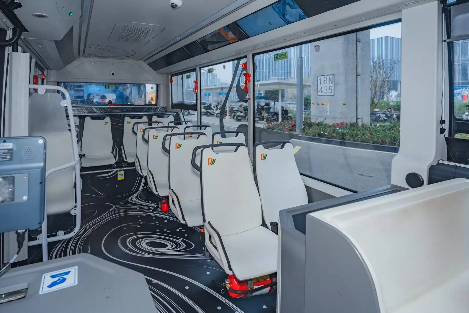 ▲自动驾驶公交车内部