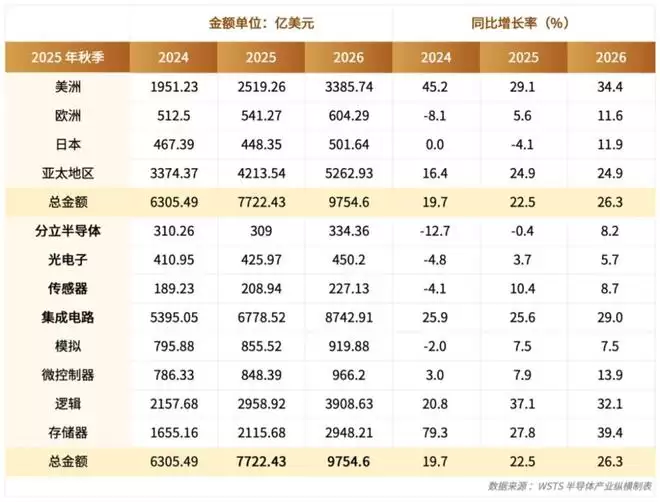 展望2026年,逻辑与存储仍将以超30%的增速领跑全局。WSTS的预测清晰揭示了行业的重心:AI服务器、数据中心、高性能计算正在驱动新一轮结构性增长。