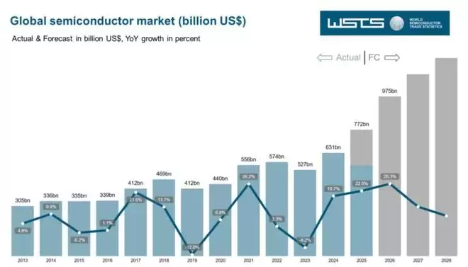 2025年市场规模预计同比增长22.5%,远高于此前11.2%的预测;2026年有望再增长26.3%,达到9750亿美元,距离万亿美元大关仅一步之遥。