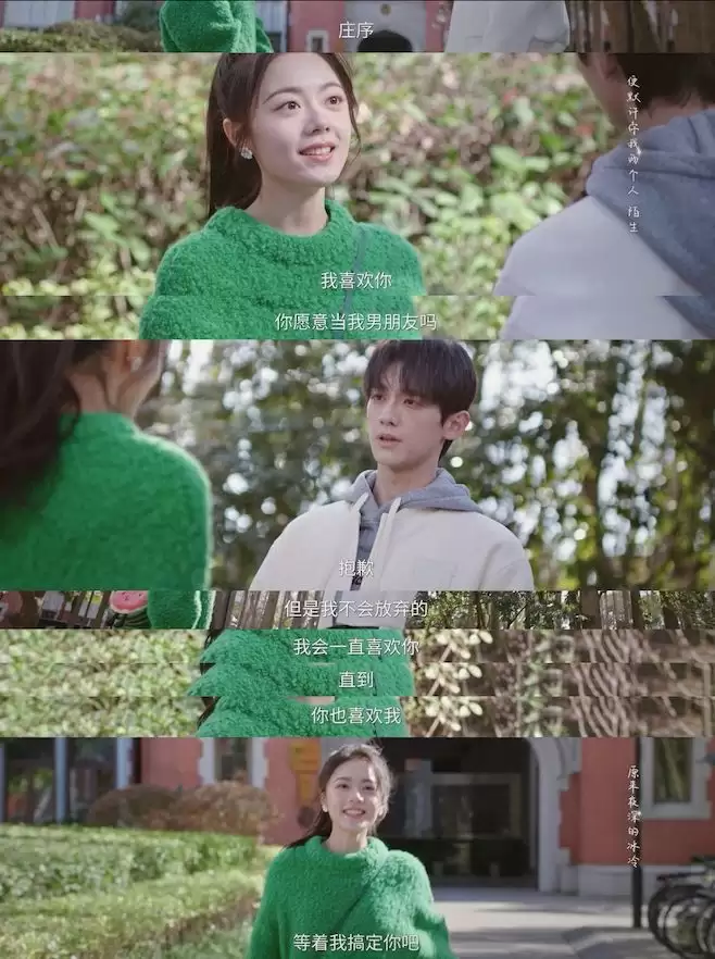 大学时期,她爱慕着校园男神庄序,勇敢向对方表白,却被对方拒绝。