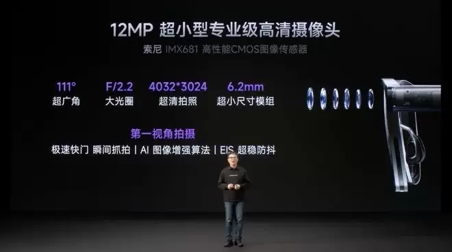 录眸loomos L1搭载12MP的索尼IMX681高性能CMOS图像传感器,有111°超广角,模组尺寸只有6.2mm,比同类产品缩小19%,还有EIS动态防抖功能,暗光环境也能实现色彩保真。