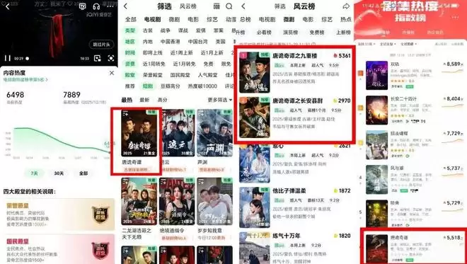 去年8月,《唐朝诡事录之西行》收官时,唐诡官微宣布“第三季长安见”;今年11月《唐诡长安》收官当天,官微也提出“长安奇旅暂歇,唐诡奇谭再相逢”的口号;12月《唐诡奇谭》播出尾声,唐诡官微打造出了“唐诡播完中剧播短剧”“唐诡2025最后一案来了”等热搜话题,丝滑将用户关注度导流至新一季短剧。