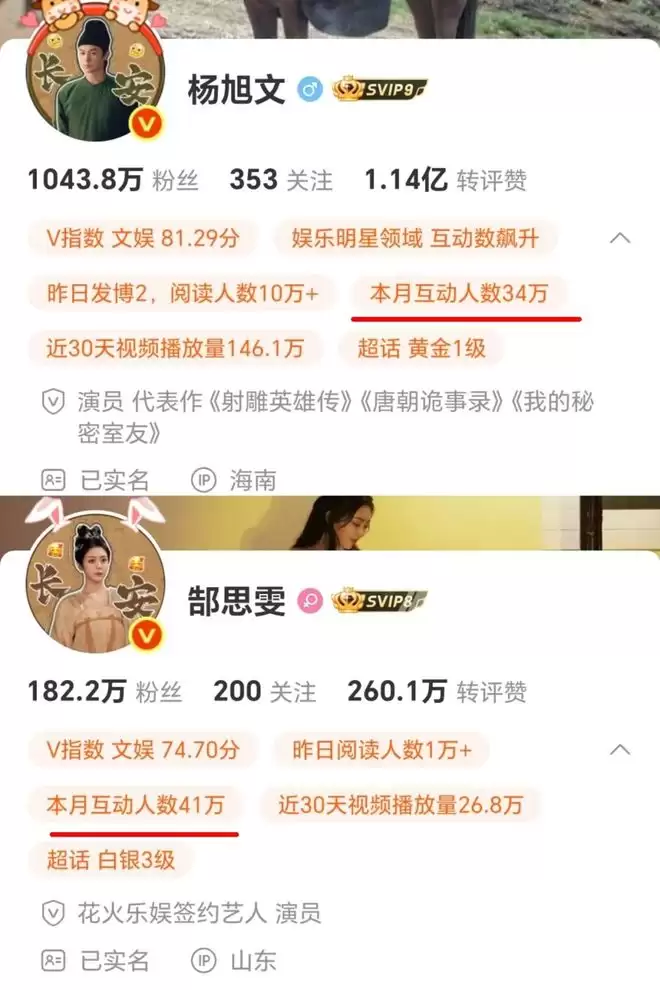 以《唐朝诡事录》系列为例,新一季内容播出后,小分队主演们借助角色光环,收获了个人热度和商业价值的新高峰。微博显示,主演杨旭文、郜思雯最新账号本月互动人数分别达到34万,41万,与粉丝交互紧密。