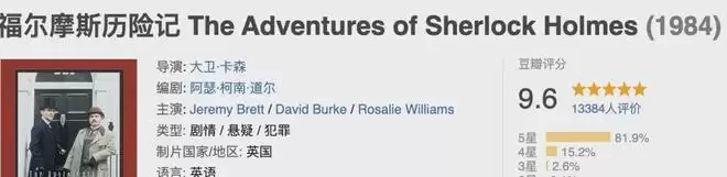 《福尔摩斯历险记》每一集都是一段独立的故事,除了有福尔摩斯的精彩破案过程,还有复杂的人性,以及富有复古感的场景。
