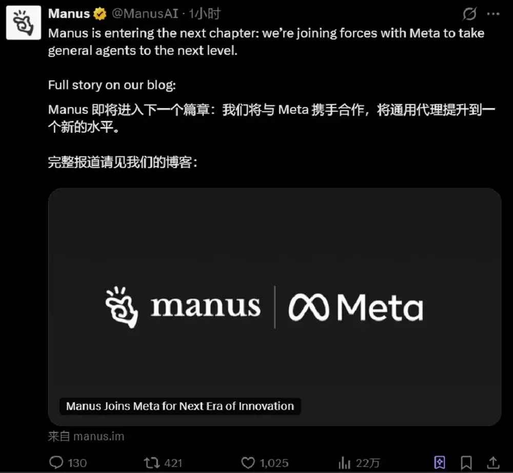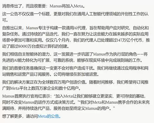 重磅!Meta正式宣布收购Manus!