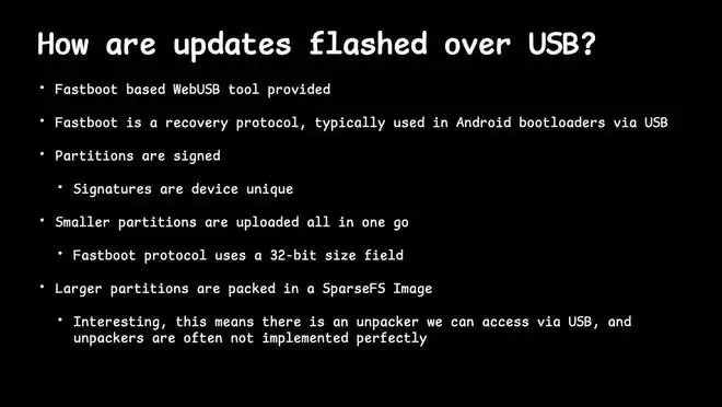 Katze首先将突破口瞄准了设备的Fastboot协议。经过分析,她发现该协议基于英伟达(NVIDIA)提供的开源代码实现。在仔细审计代码后,她敏锐地发现了两处关键漏洞: