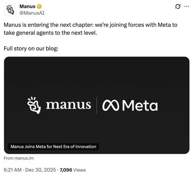 就在不久之前,Meta宣布完成一项重大收购,将AI体初创公司Manus纳入麾下。