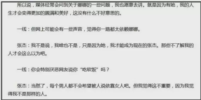 张杰曾经回应过外界质疑他靠谢娜上位一事,他不喜欢被说吃软饭,不过大方承认自己依赖谢娜,表示因为有谢娜,他的人生才会圆满和美好,是因为谢娜,他才能成为现在的张杰。